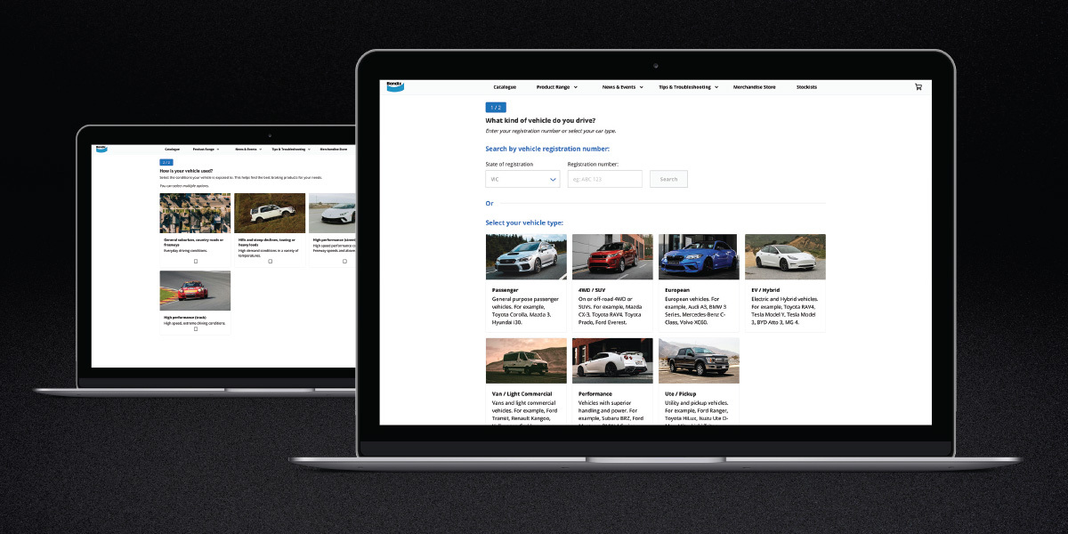 As an alternative to entering car registration details, the selector also allows users to choose a vehicle type: ‘Passenger’, ‘4WD / SUV’, ‘European’, ‘EV / Hybrid’, ‘Van / Light Commercial’, ‘Performance’ and ‘Ute / Pickup’, before again prompting them to select from the driving categories mentioned earlier.