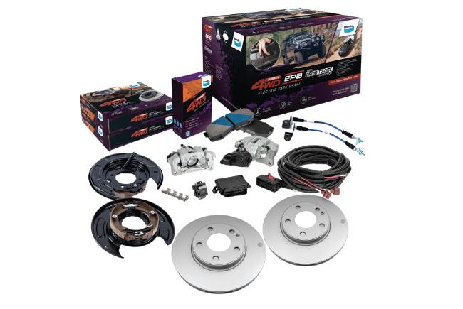 No change needed to your 4WD's hydraulic mechanism, pad shape or original park brake.
